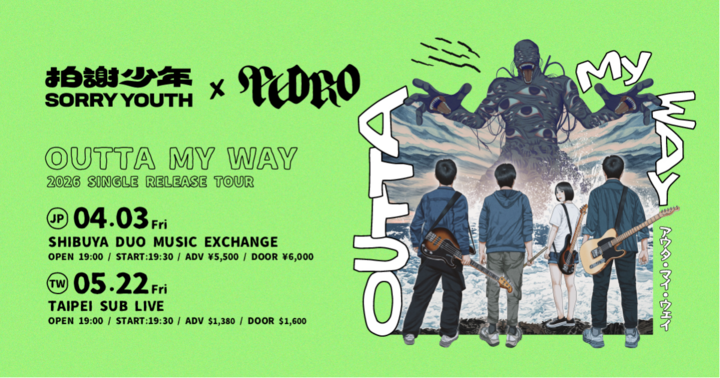 エンタメ Sorry Youth x PEDRO 2026 〈Outta My Way〉single release tour—台北場