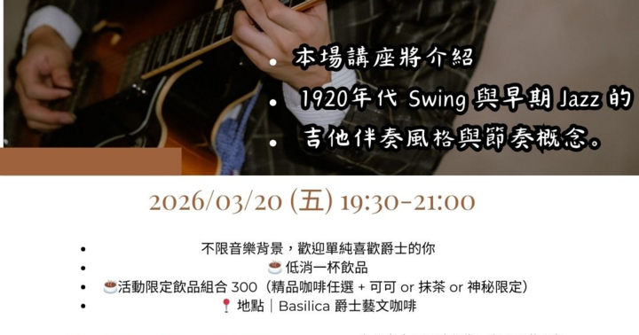 演出 爵士吉他分享沙龍|1920搖擺年代伴奏講座