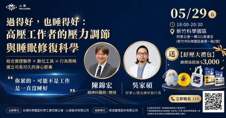 學習 【免費講座】過得好,也睡得好:高壓工作者的壓力調節與睡眠修復科學