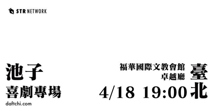 你好!我是池子,一名中國脫口秀演員。這是我第一個脫口秀專場,我想帶給你我最好的演出!我們現場見! ◆ 演出日期 2026/04/18(六)19:00 開演(18:00 開放入場) ◆ 演出地點 福華國