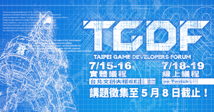 台北遊戲開發者論壇(TGDF)由我國的遊戲創作者社群發起,自 2012 年以來已邁入第十五屆。今年度將分別有精采的實體議程與線上直播內容,由國內外講者們分享遊戲開發的經驗與第一手心得,請勿錯過哦!