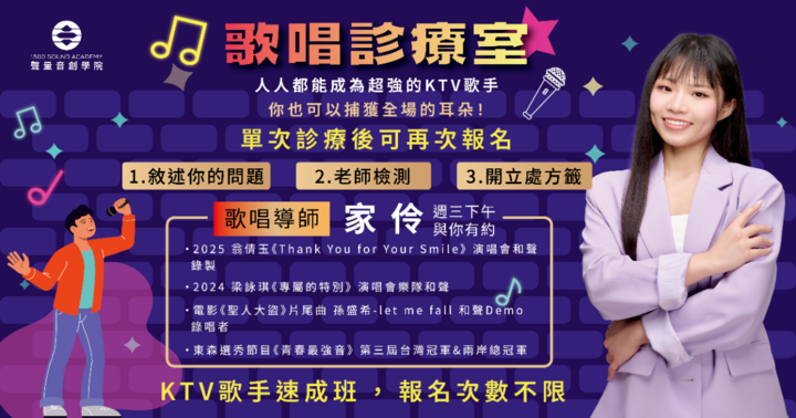 學習 1500 SOUND ACADEMY 聲量音創學院 4/22 ( 三 ) 家伶 歌唱診療室