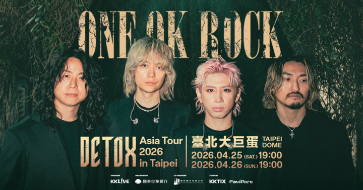 ONE OK ROCK DETOX Asia Tour 2026 in Taipei 2026 年 4 月 25 日、 4 月 26 日 日本搖滾天團 ONE OK ROCK 首登臺北大巨蛋 自 2