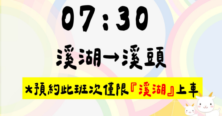 注意事項: 請務必於發車前10分鐘至車站報到,逾時將由現場候位乘客替補,並請您改為現場候位。 超過3次未依規定時間報到者,將列為黑名單,不再提供預約服務。(已訂票之黑名單,將於發車前一日由系統自